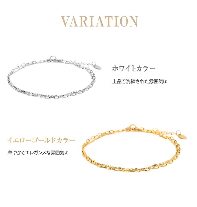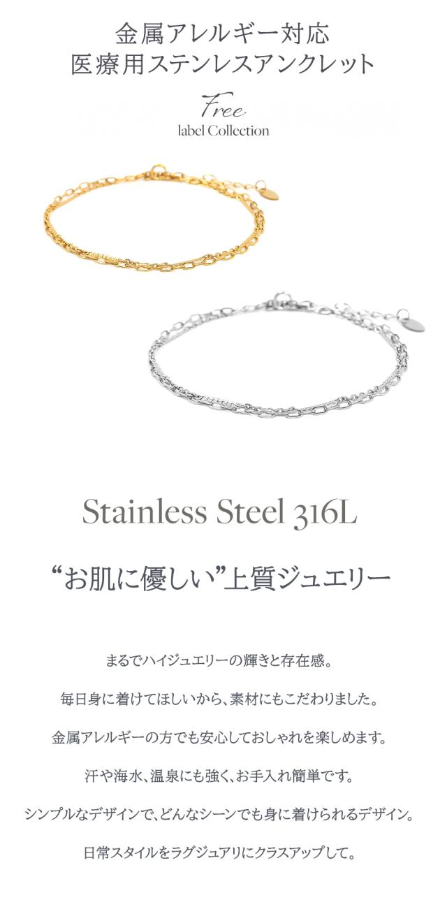 「 アンクレット 」× ジュエリー感のある洗練された質感シルエットと輝きの美しいエレガントなアンクレット。女性の足首を華奢に細く見せてくれます。シンプルなデザインで、重ね付けにもおすすめです。「 ステンレス 316L 」は金属アレルギー対応で、お肌に優しく安心です。