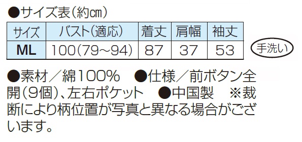 ●仕様/前ボタン全開(9個)、左右ポケット
