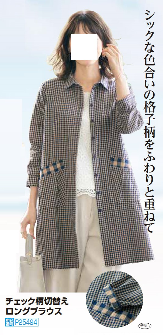 シャツ ブラウス 長袖 チェック レディース きれいめ チェック柄 切替え ロングブラウス ベージュ ネイビー 婦人服 ミセス シニア 女性 格子柄 かわいい ナチュラル ポケット コットン シニアファッション 40代 50代 60代 70代 80代 母の日 お母さん 春夏 nss p25494