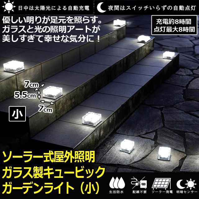 ソーラー式屋外照明「ガラス製キュービックガーデンライト(小)」 (屋外照明 玄関照明 玄関アプローチ照明)