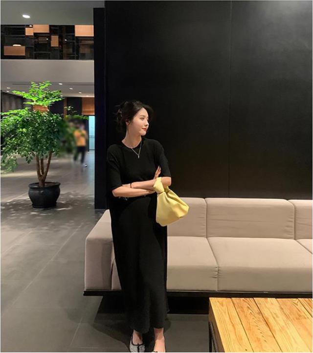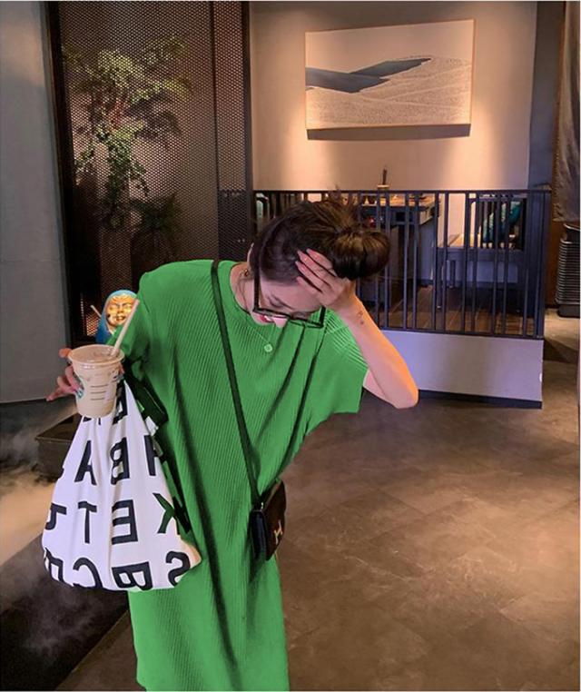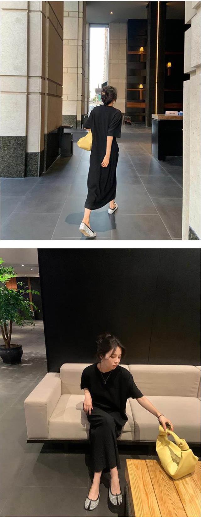 - そのままストンと着ても1枚でいい感じです。 光沢のある生地なのでウエストをマークするとキチンと感がでます!