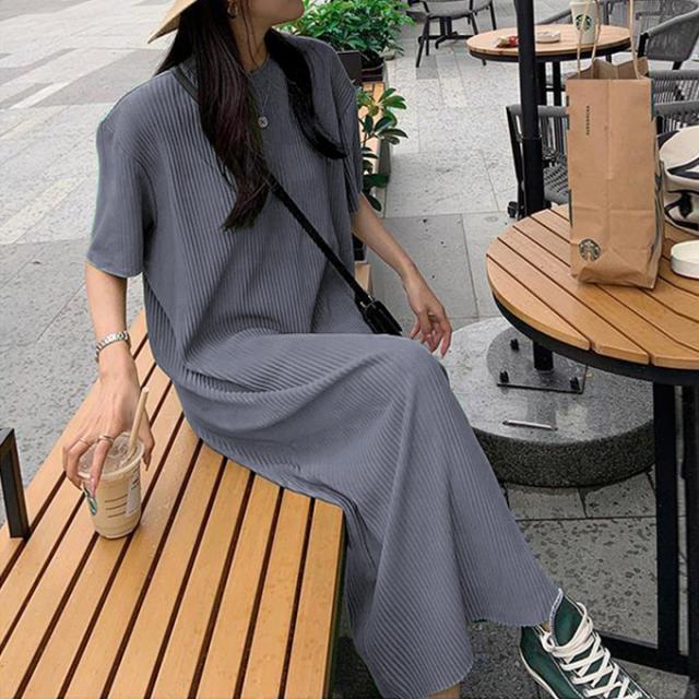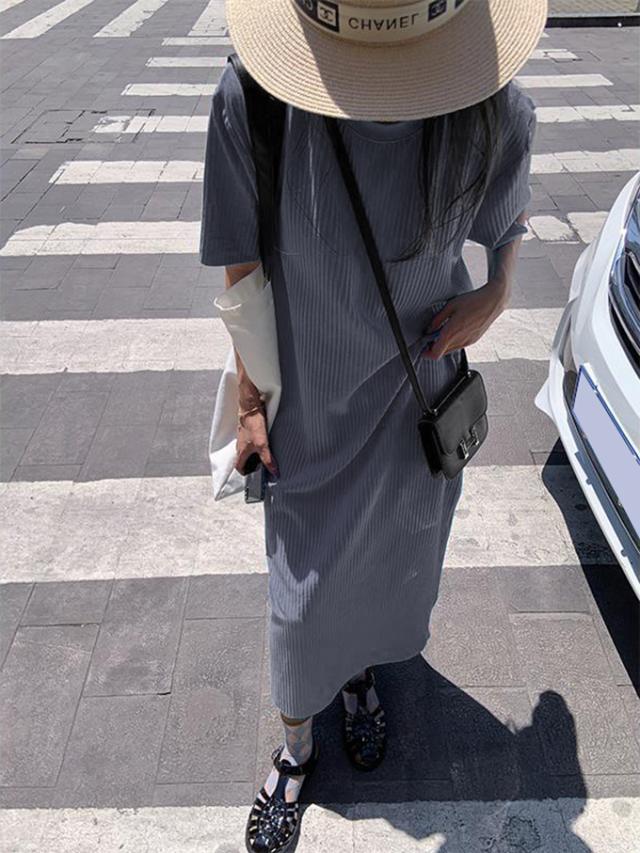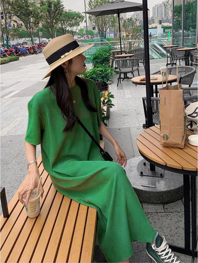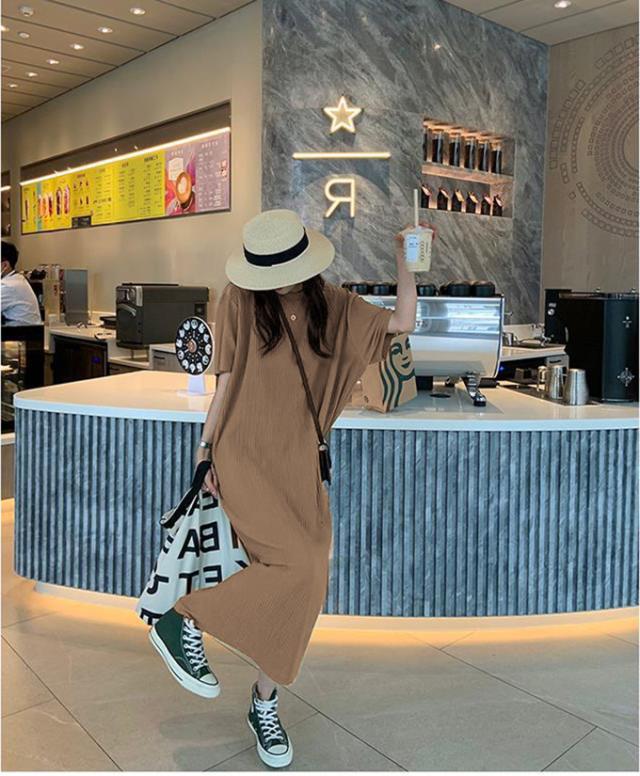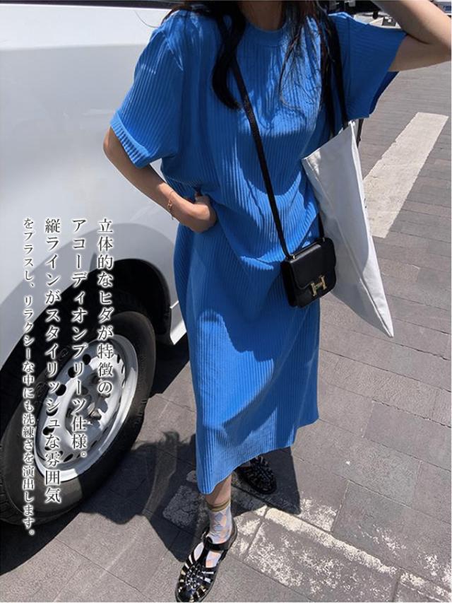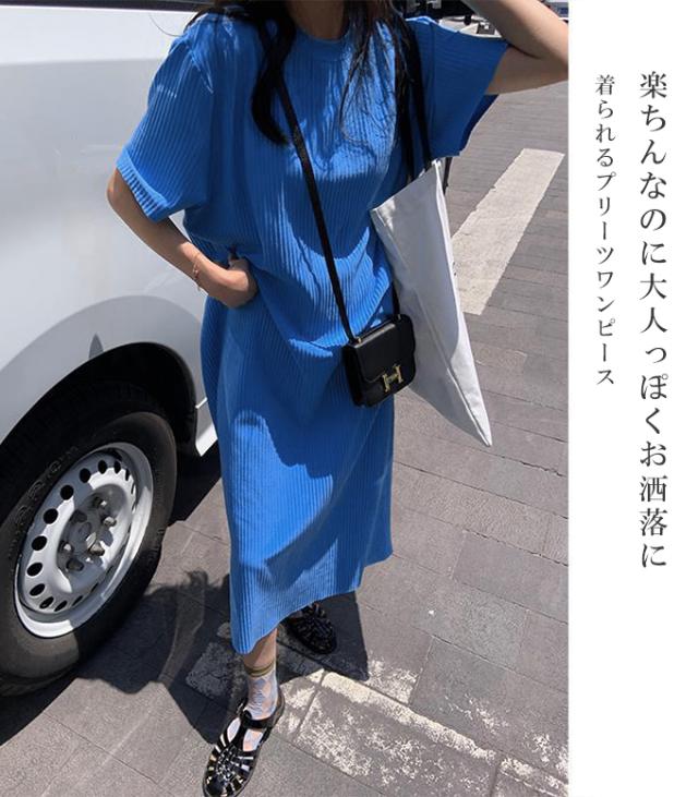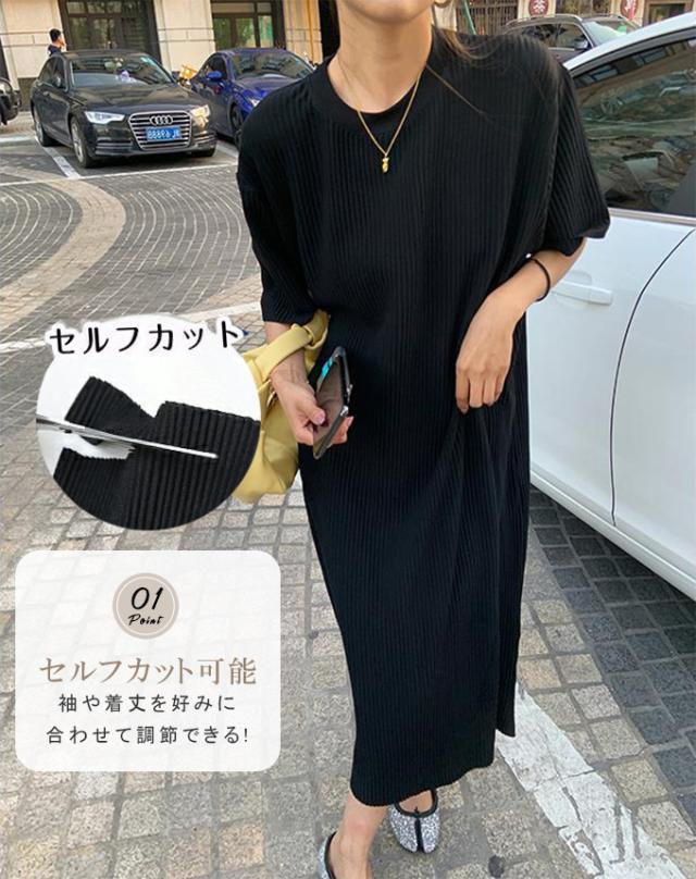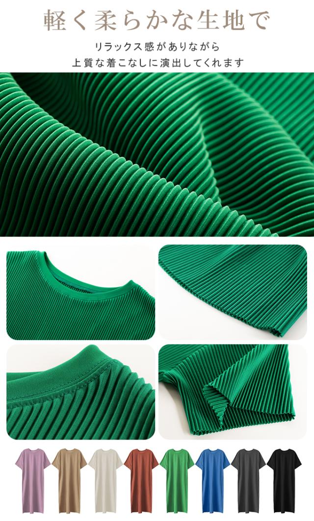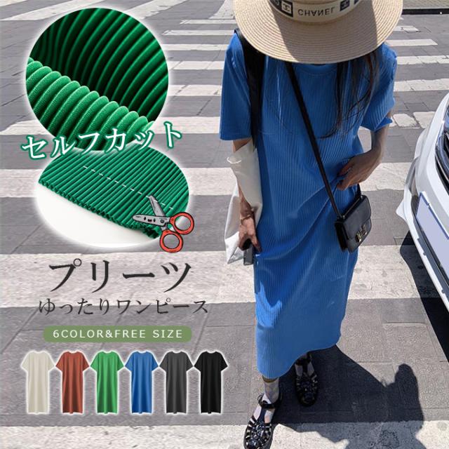 半額キャンペーン中 プリーツワンピース 夏 セルフカット レディース プリーツ ワンピース ロングワンピース 半袖 Tシャツワンピース クルーネック 裾カットOK ビッグシルエット きれいめ オフィス カジュアル とらみ