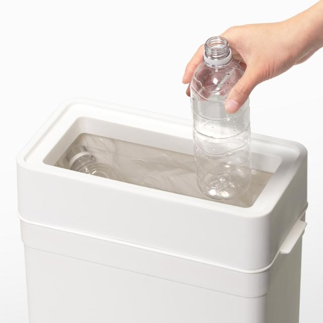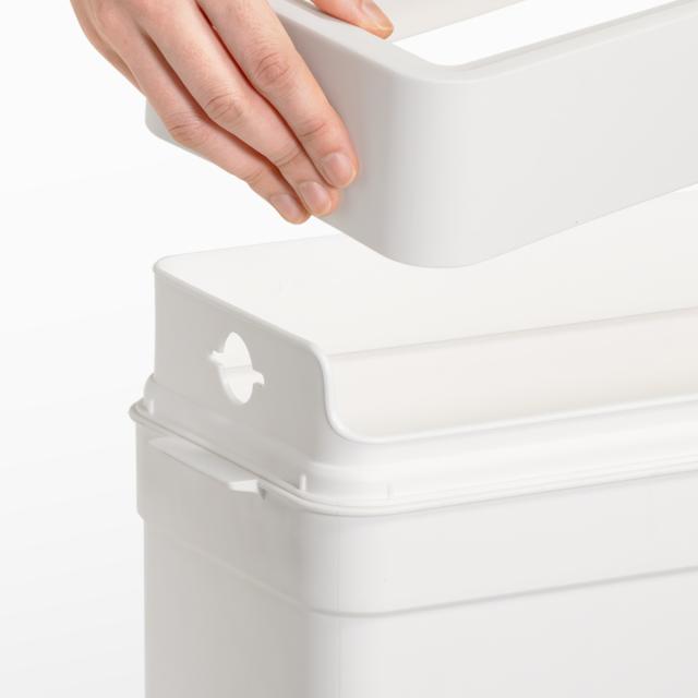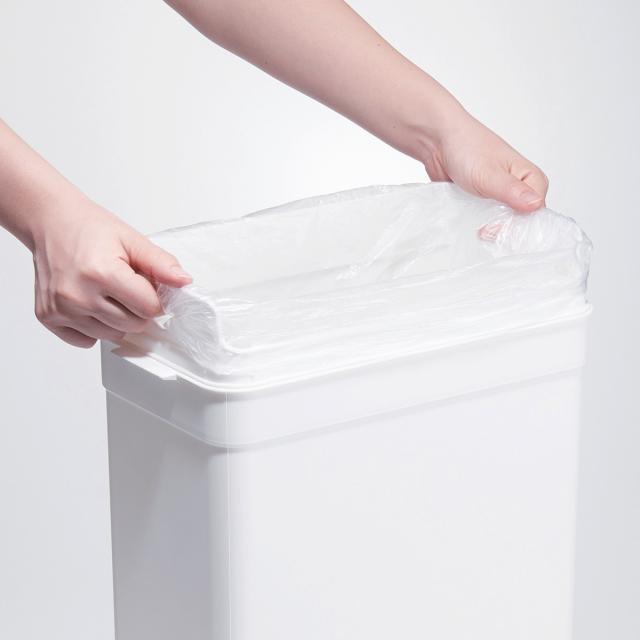 本体とフタの間にゴミ袋ホルダーが付いており、袋がはみ出さずにセットすることができます。フタをすれば外側から袋が見えないので生活感が出る心配がありません。