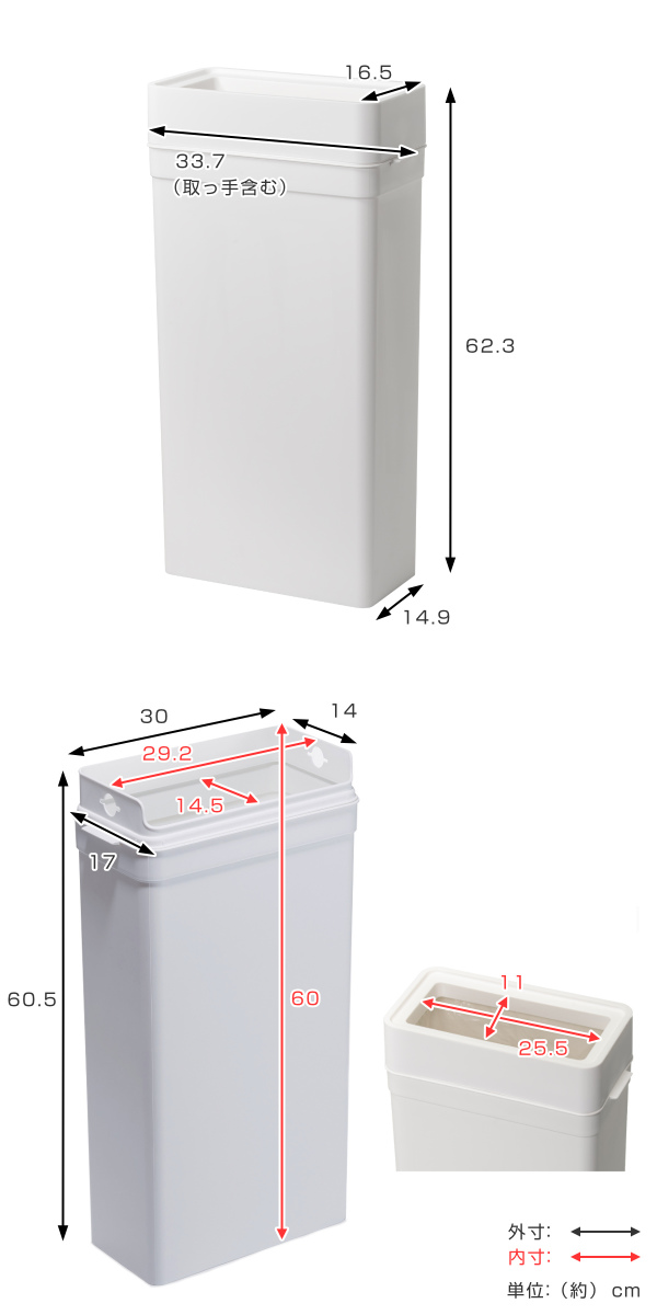 ゴミ箱 25L マルチパーパスビン ( ごみ箱 25リットル オープンタイプ スリム 隙間 17cm 分別 キッチン リビング 袋止め付き ゴミ箱 分別)