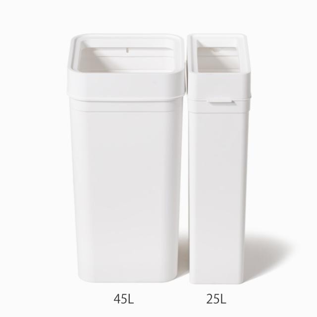 シリーズでそろえて使用すれば、空間に統一感が生まれます。容量25Lと同シリーズの容量45Lは、高さと奥行がそろうサイズ設計です。並べて置いてもすっきりみせてくれます。