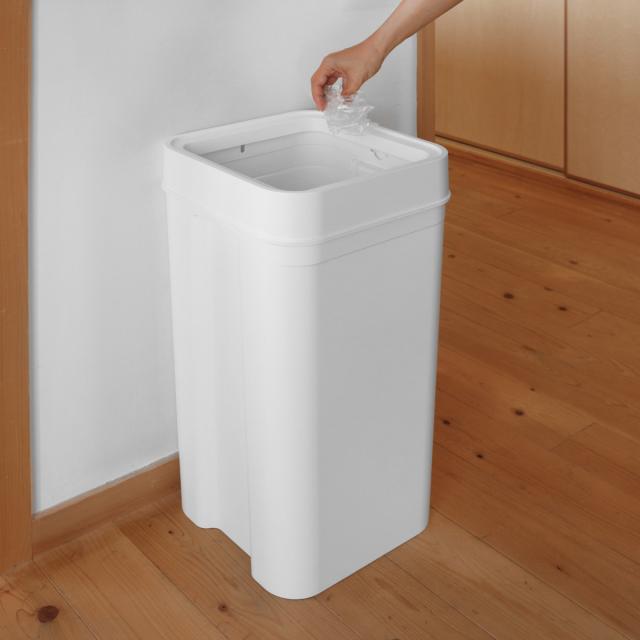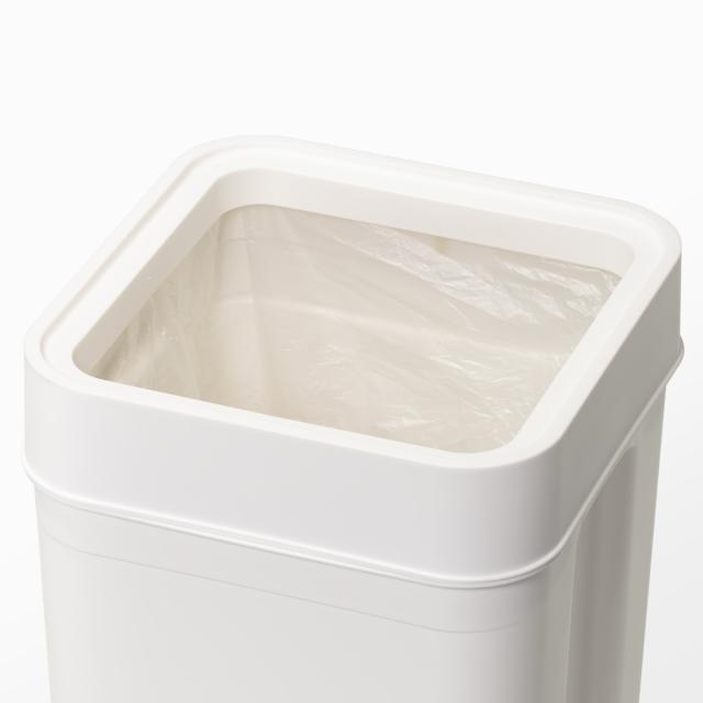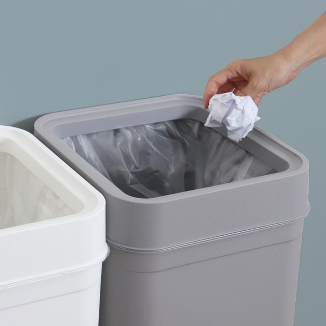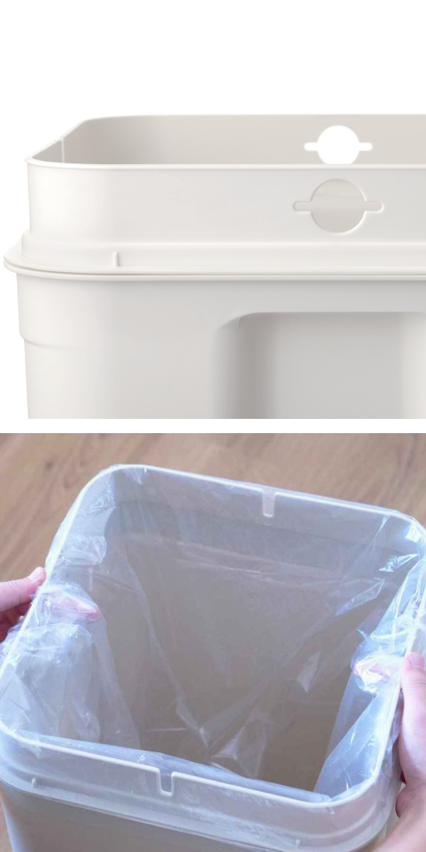 本体とフタの間にゴミ袋ホルダーが付いており、袋がはみ出さずにセットすることができます。フタをすれば外側から袋が見えないので生活感が出る心配がありません。