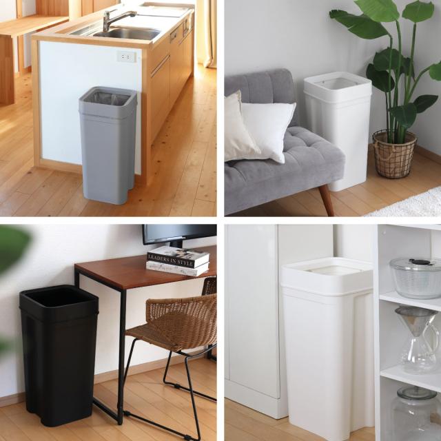 分別用に並べて置いても場所をとらず、すっきり設置できます。色違いを複数個並べて、ペットボトル、ビン、缶など、種類ごとに捨てる色を決めておけば、一目で分かりやすい分別ゴミ箱として使用できます。