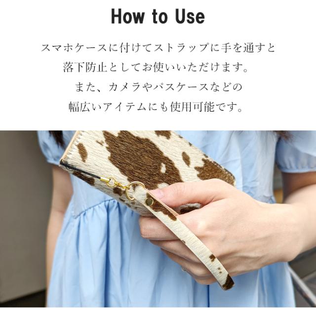 ストラップ 本革 ハラコ マルチストラップ スマホストラップ レザー パスケース 定期入れ リストストラップ 革 うし柄 牛革 手帳型 携帯 スマホ キーホルダー