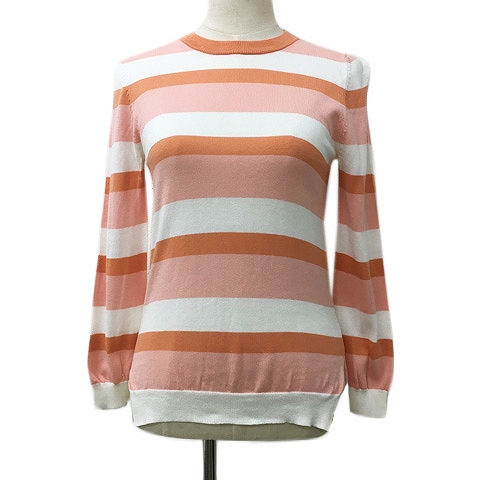 【中古】ナチュラルビューティーベーシック セーター ニット クルーネック ボーダー 薄手 長袖 M ピンク 白