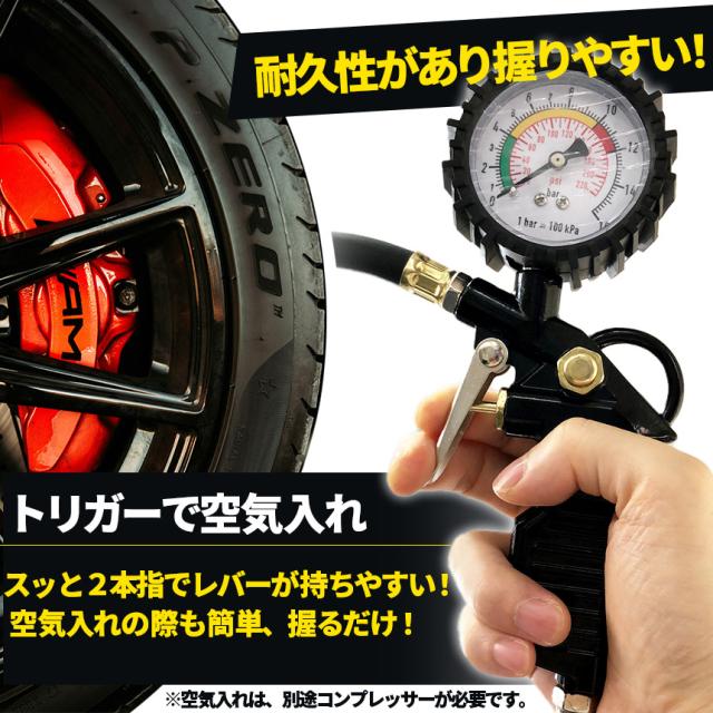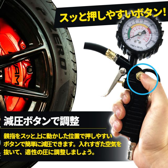 エアチャックガン エアゲージ タイヤゲージ エアチャック アナログ 空気抜き 測定 自動車 自転車兼用 見やすい目盛り 点検 測定 タイヤ 空気圧 空気入れ 自動車 ツール 空気圧ゲージ 空気圧計 仏式 米式