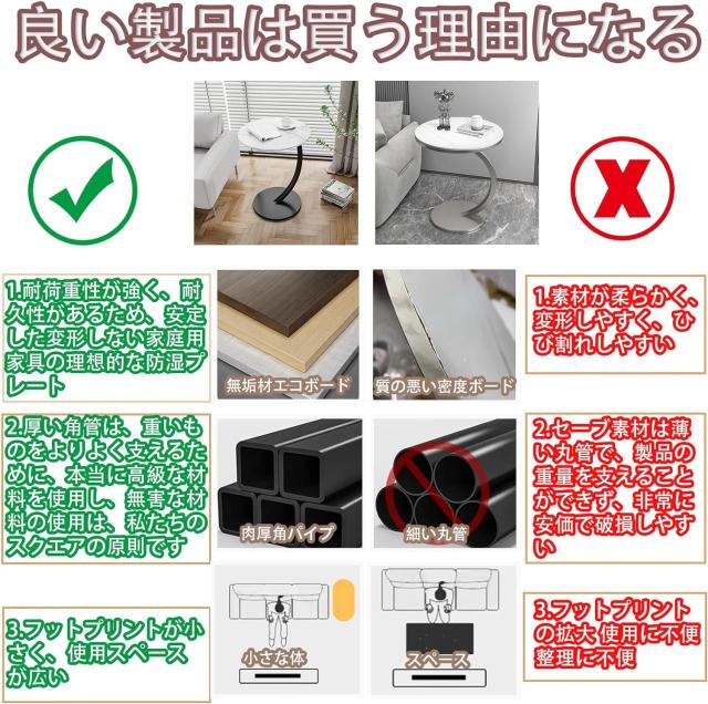 ★【多目的】C字型デザインとクラシックな外観のサイドテーブルは、ナイトスタンド、朝食テーブル、ソファテーブル、ラップトップテーブルなどとして使用できます。 利便性と楽しみのための日常のニーズを満たします。