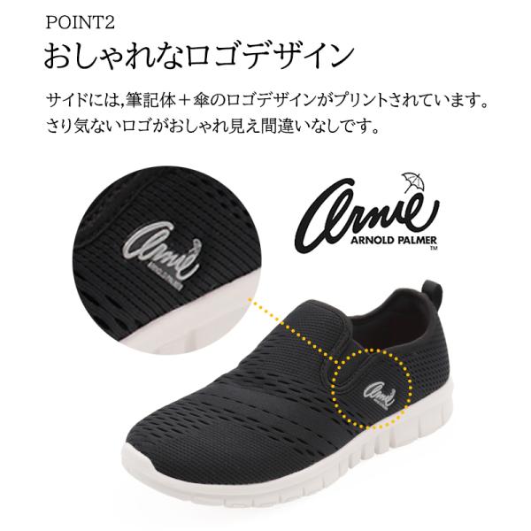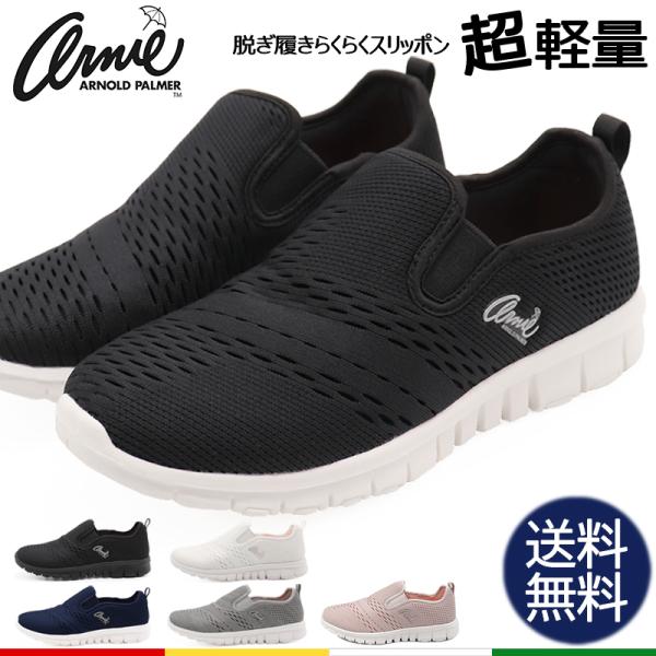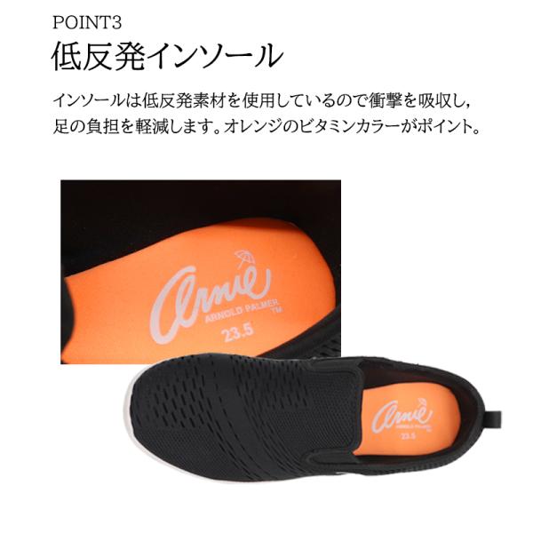 スニーカー レディース アーニーアーノルドパーマー AN0902 スリッポン 軽量 おしゃれ 白 黒 疲れない