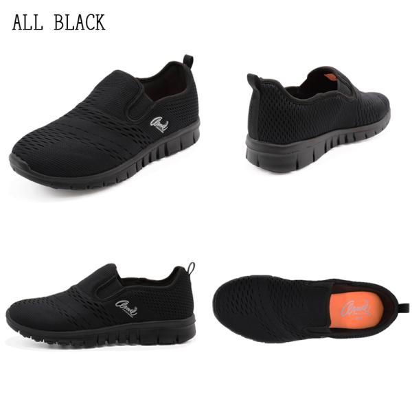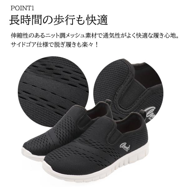 すっきりとしたシンプルなデザインに伸縮性のあるニット調メッシュ素材を使用。通気性もあり快適な履き心地です。両サイドがゴム仕様なので脱ぎ履きもらくらく。