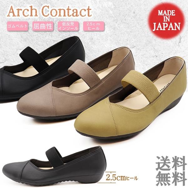 パンプス 歩きやすい ローヒール アーモンドトゥ ストラップシューズ ARCH CONTACT アーチコンタクト 日本製 黒