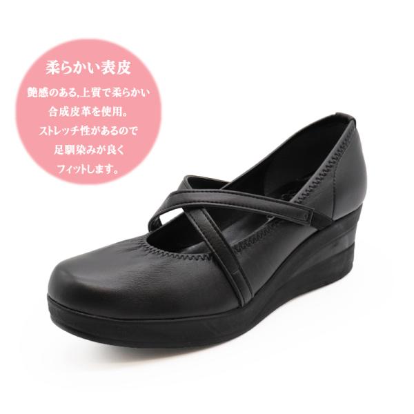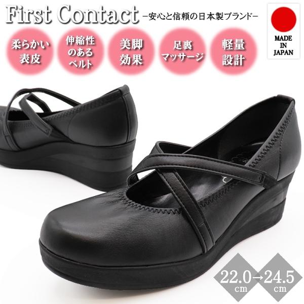 ストラップパンプス 痛くない 歩きやすい ウェッジソール 厚底靴 ファーストコンタクト 日本製