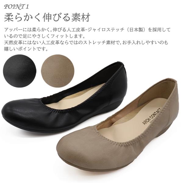 パンプス バレエシューズ フラットシューズ 痛くない低反発インソール ローヒール ストレッチ生地 日本製