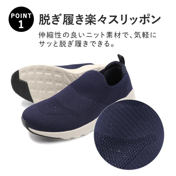 アッパーはニット素材で、足にフィットし快適仕様。