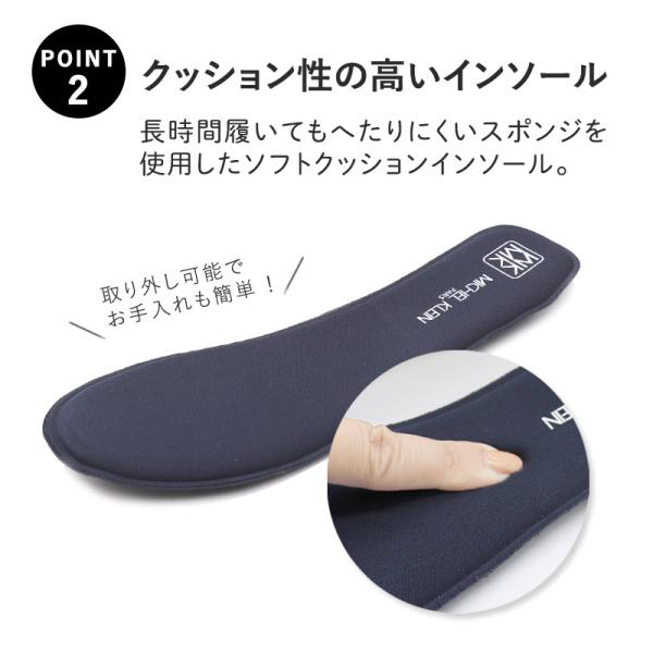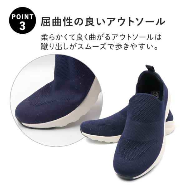 屈曲性抜群のアウトソールになっているので歩行が軽やかで、脱ぎ履きも簡単でおすすめです。