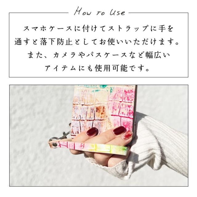 ストラップ ナスカン付き スマホストラップ レディース 本革 型押しアート 携帯ストラップ キーホルダー レザー 携帯 定期入れ リストストラップ 革 牛革 手帳型 パスケース
