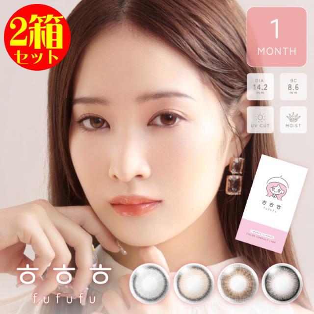 カラコン 2箱セット fufufu マンスリー UV モイスト 1箱2枚 ちゅるん ナチュラル 裸眼風 14.2mm グレー 透明感 色素薄い 裸眼 カラー コンタクト