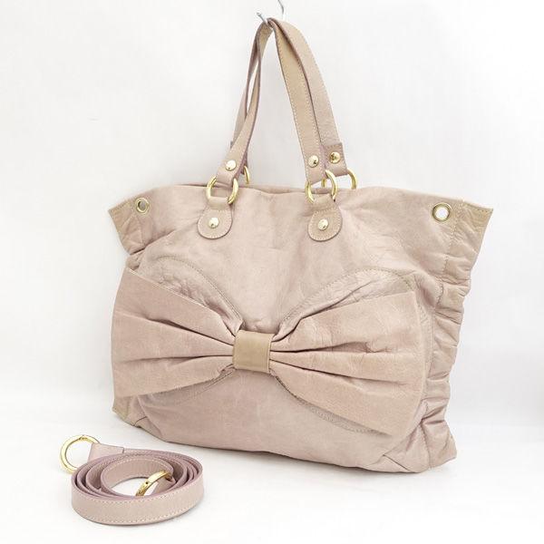 2WAY / ツーウェイ ◆ハンドバッグ/トートバッグ/リボン/レザー/ピンク 【バッグ/バック/BAG/鞄/カバン】 【中古】