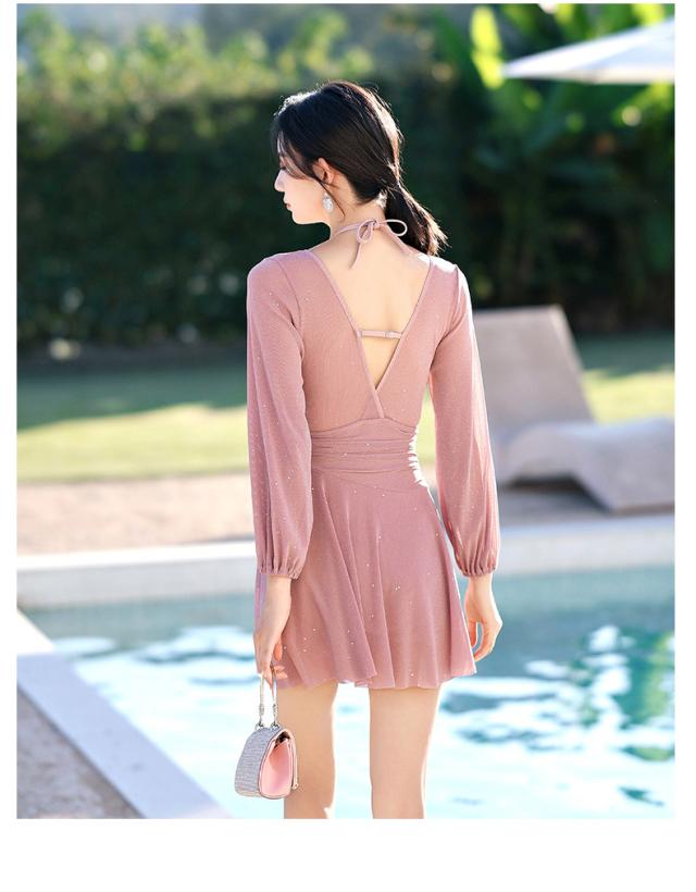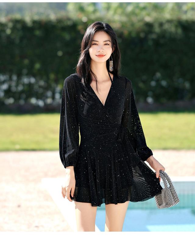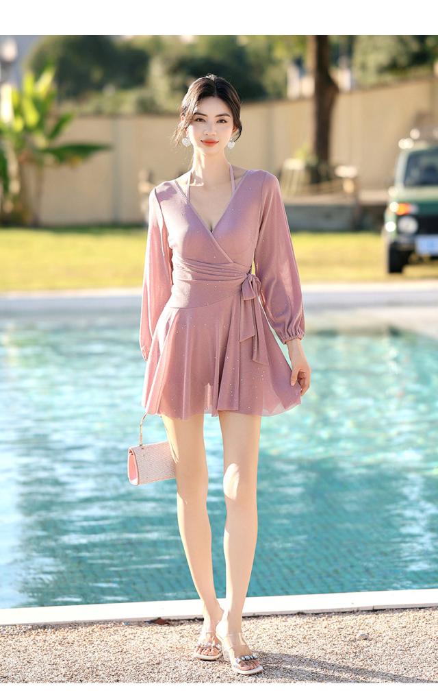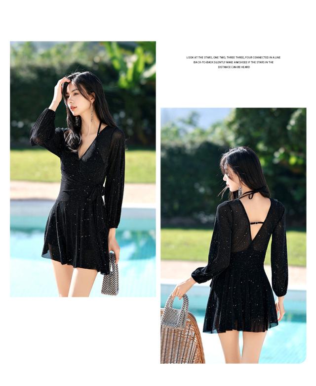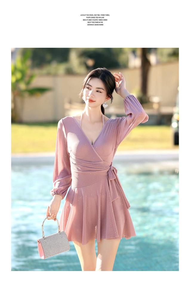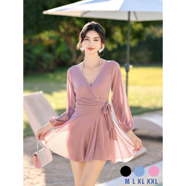 水着 ワンピース レディース 体型カバー ワンピース水着 長袖 フレア セクシー スイムウェア オトナ女子 おしゃれ 40代 小胸バンドゥ