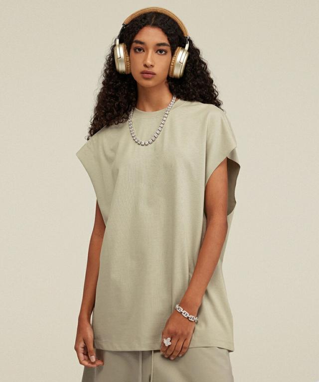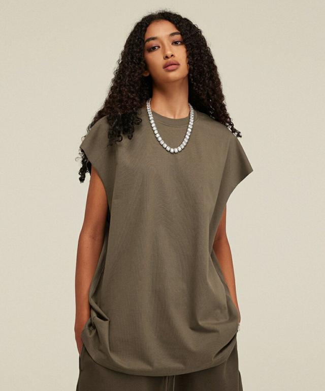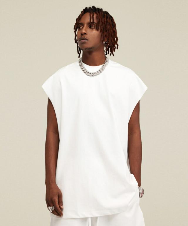 シンプルなデザインをシルエットで遊んだ使い勝手抜群のノースリーブTシャツです。