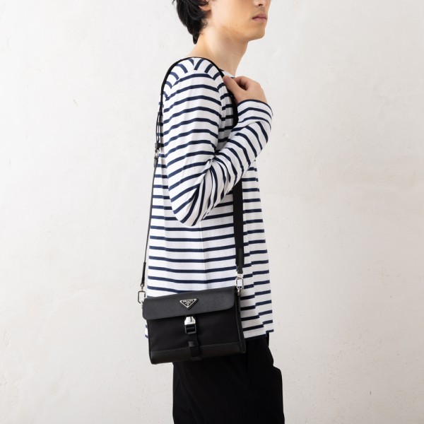 ●商品名:プラダ ショルダーバッグ リナイロン トライアングルロゴ ブラック メンズ レディース ユニセックス PRADA 2VD053 2DMH F0002 RE NYLON AND SAFFIANO SHOULDER BAG NERO ミニバッグ