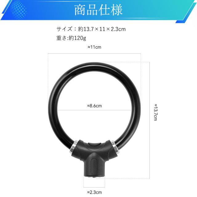 自転車 鍵 ワイヤーロック コンパクト 盗難防止 リング錠 最強 おしゃれ ロードバイク クロスバイク 防犯 マウンテンバイク 軽