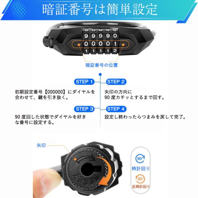 自転車 鍵 ワイヤーロック ダイヤル式 5桁 チェーン 長い 盗難防止 ナンバー カギ ワイヤー ホルダー ブラケット付き ケーブ