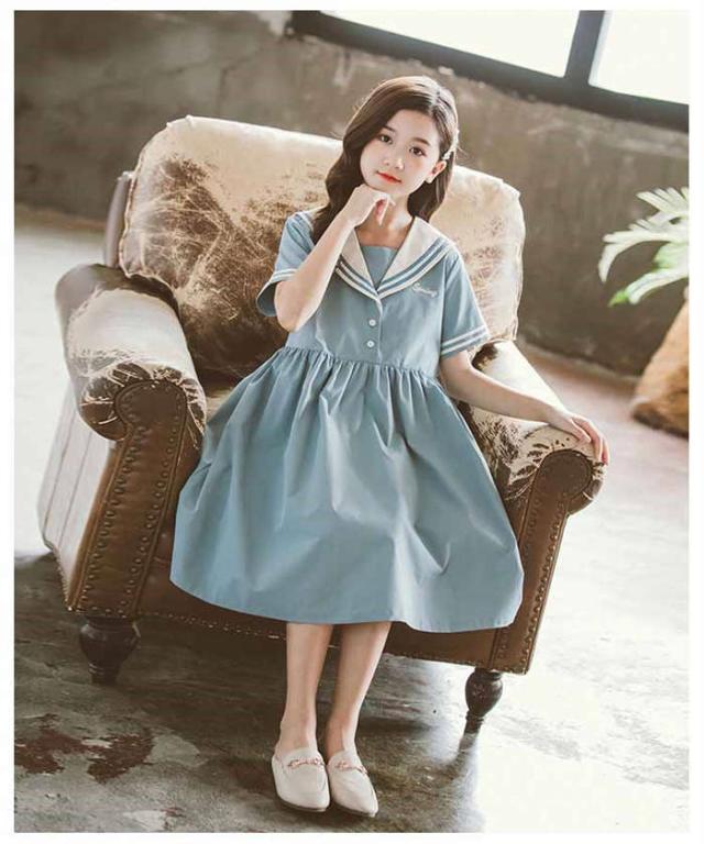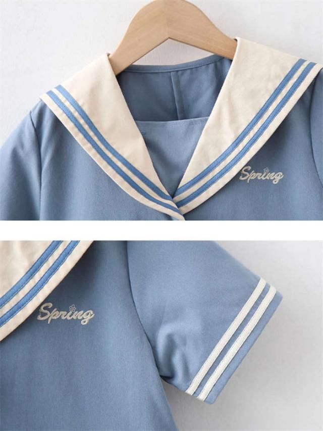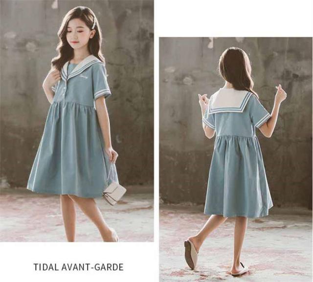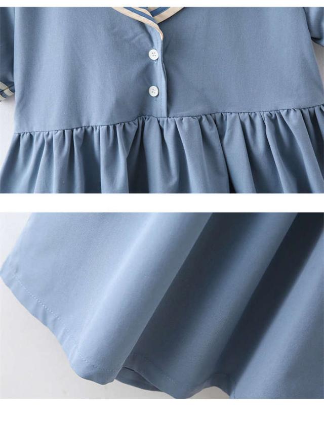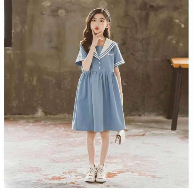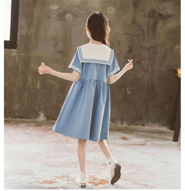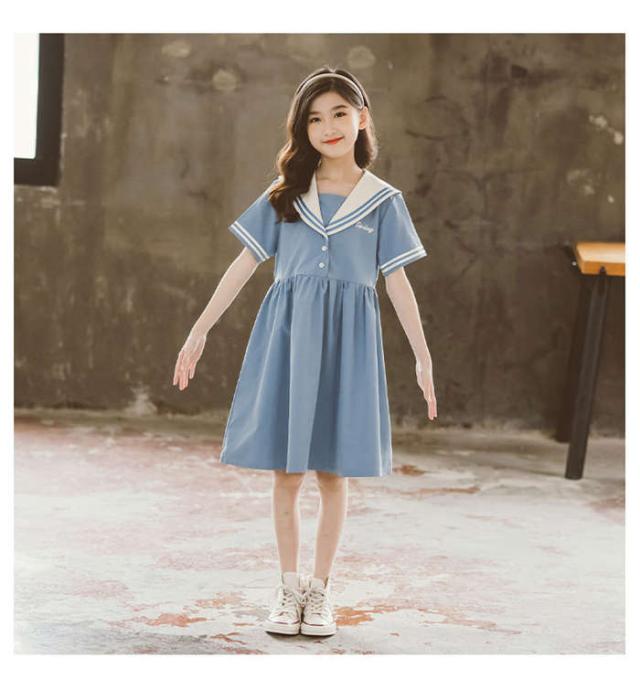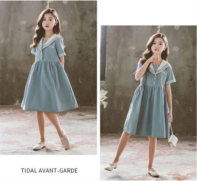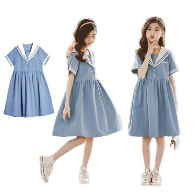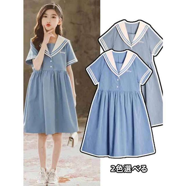 商品名:【短納期】キッズワンピース セーラー風 半袖 子供ワンピース 女の子 キッズワンピ ジュニアワンピース 子供服 ひざ丈 ワンピース 制服 カジュアル おしゃれ ガールズ ファッション 大きいサイズ 入園式 卒業式 通学着 普段着 発表会 演出服 子ども服 中学生 イベント 120cm-170cm