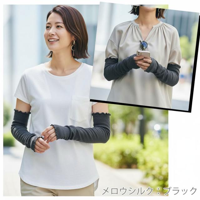 ・シルク混素材でふんわり軽く、柔らかいアームカバー