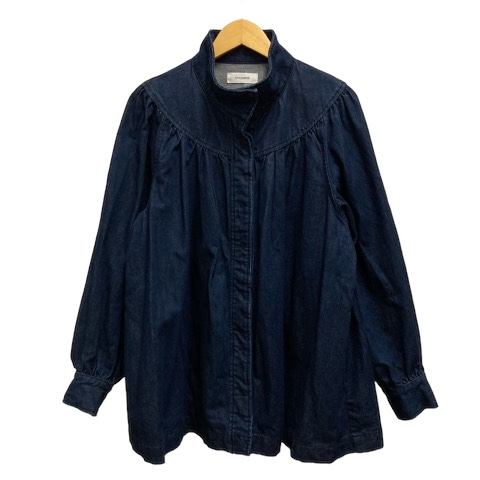 【中古】スタイルミキサー STYLEMIXER ジャケット 革ジャン Gジャン オフネック フレア 綿 無地 長袖 M 青 インディゴブルー レディース