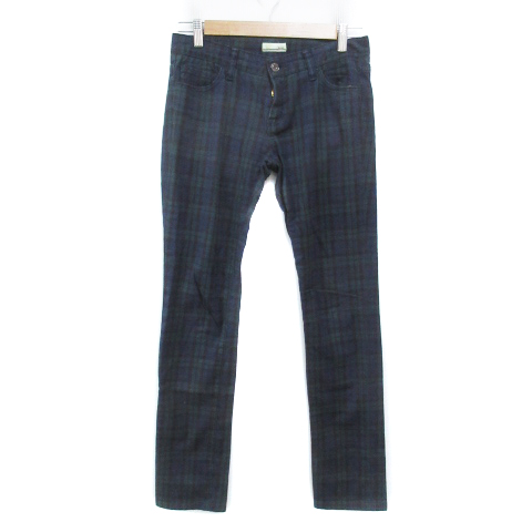 【中古】ジャスミン スキニーパンツ ロング丈 ストレッチ素材 チェック柄 38 M 紺 ダークグリーン 緑 レディース