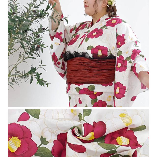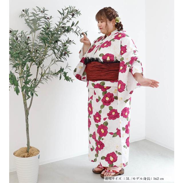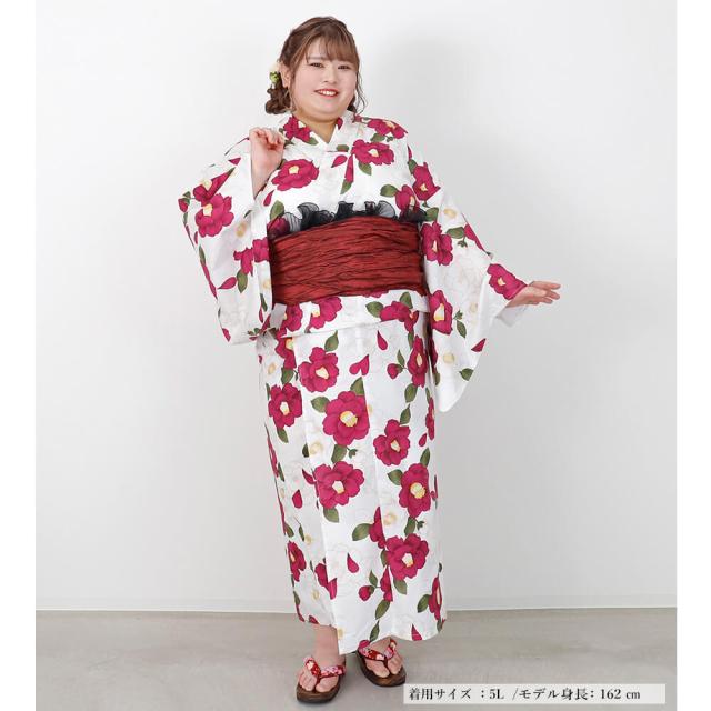 浴衣 大きいサイズ レディース ゆかた 大人 浴衣単品 3L 4L ぽっちゃり ふくよかさん向け 大きい 女性 大人浴衣 椿