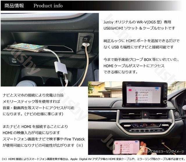 WR-V DG5型 ホンダ (純正ナビ用) USB HDMIソケット&ケーブル+Eタイプ HDMI入力 アダプタ ミラーリング LXM-242ZFNi LXM-245ZFEi パーツ アクセサリー WRV