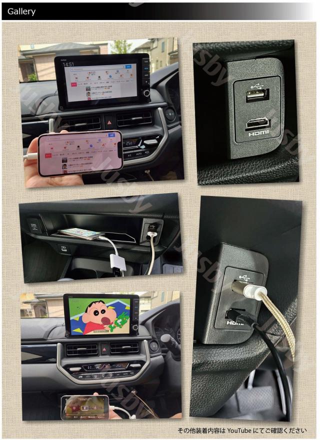 | HONDA WR-V 専用 USB/HDMIソケット&ケーブルセット+Eタイプです。 2024.3月発売 ホンダ WR-V(DG5型)用 USB&HDMIソケット&ケーブルセット+Eタイプです。 純正ナビ用のキットとなっておりUSB&HDMIポートをスマートに装着可能です ソケットやケーブルも含め全て当社オリジナル商品となります。純正ルックにHDMI入力ポートを追加できる様になります。 純正のUSBポートも犠牲にせずHDMIやUSBケーブルがスマートにアクセスできる様になります。 対応確認済み純正ナビ 9インチ Honda CONNECTナ LXM-242ZFNi 8インチ Honda CONNECTナビ LXM-245ZFEi 8インチ ディスプレイオーディオ LX-240ZFE ナビとHDMIを接続することにより HDMIの映像入力が可能になります。 スマートフォン画面をナビで映す事やFire TVstick等が使用可能になりナビの可能性が広がります。 USBケーブルは約60cm HDMIケーブルは1mの長さとなっております。 USB端子は2Aの給電に対応可能なUSB2.0に準拠する高品質ケーブルを採用しております。 HDMIケーブルはHDMI正規ライセンス品となっております。端子は金メッキ処理により耐腐食性・通電安定性の高い仕様です。 当商品のケーブルは1年保証付きです。安心してご利用ください 注意事項 ・ページで記載のmp4動画再生やCarPlayはナビが対応している必要があります。ナビ仕様により異なりますのでお客様にてご確認ください ( ・∀・)Φスタッフレビュー 純正ルックで非常にスマートにインストールされる為、後付感ゼロです。 純正オプションのHDMIはケーブルのみですが、当商品はソケット付きで非常にスマートにインストール可能です。 装着位置も使い勝手の良い箇所でオススメですご検討よろしくおねがいします。 |