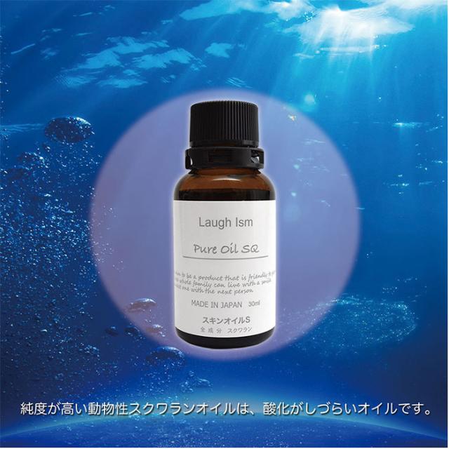 美容液 スクワランオイル 100% 30ml 通販 オイル ピュアオイル スクワラン 保湿 潤い うるおい エイジングケア マッサージ 無添加 動物性 顔 指先 体 髪 マーサインターナショナル ピュアオイルSQ Laugh ism ラフイズム 無色 無臭