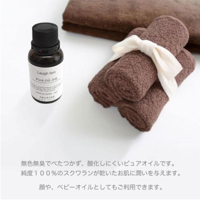 | 商品説明 | ・純度が高い動物性スクワランオイルは、酸化しにくい特性があります。 「スクワラン」は、お肌に潤いを与え、柔らかな肌触りをサポートします。無色無臭でべたつかないピュアオイルとして、乾燥したお肌にしっとり感を与えることができます。 ・顔、指先、ボディ、髪の毛など全身に使用でき、ベビーオイルとしても利用可能です。お肌の日々のケアにおすすめします。 |