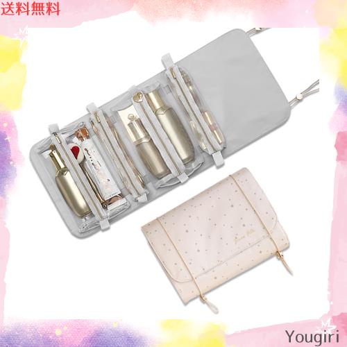 【取り外し可能ポーチ】四つの独立した収納袋、化粧品とスキンケア用品を分類して収納することができます。仕切り袋は乾湿分離で、透明で一目でわかりやすくです。マジックシールのデザインで、自由に取り外して、便利に使用します。4つの化粧ポーチとして単独で使用でき、日常的な使用ニーズに対応です。