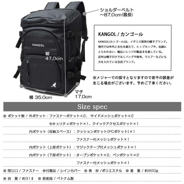 カンゴール(KANGOL)/リュック バックパック レインカバー付き