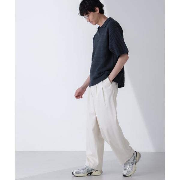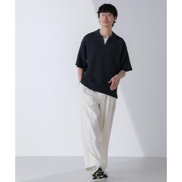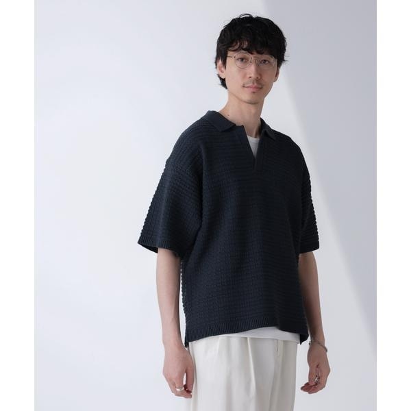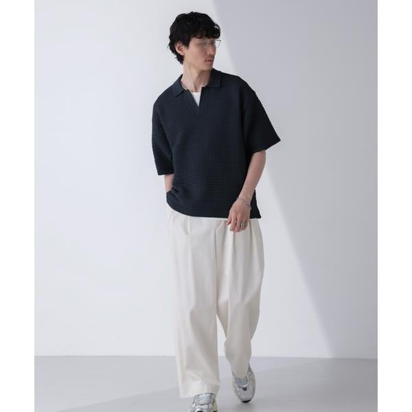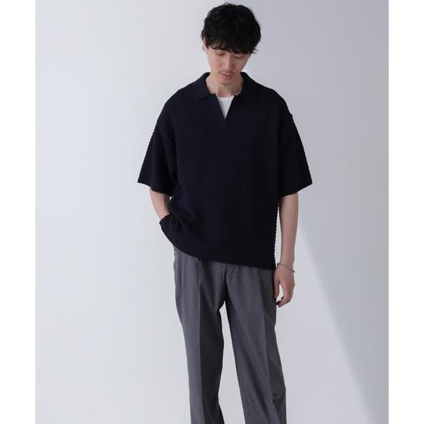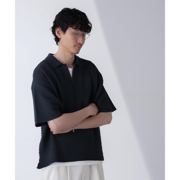 程よくビッグなシルエットに仕上げたジャガードボーダーポロシャツ。特殊な編地で編まれた伸縮性に優れた1枚。凹凸感のあるジャガードデザインがコーディネートのアクセントに。インナーにカットソーを加えたレイヤードスタイルもおすすめです。