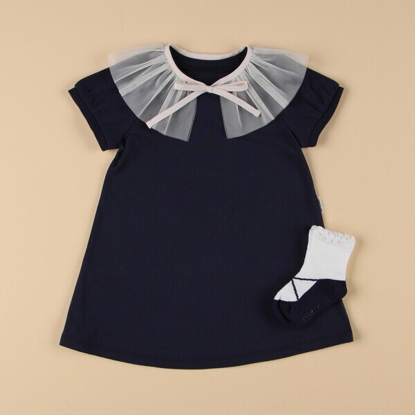 少し大きめなチュール襟がセットになった半袖ワンピースです。