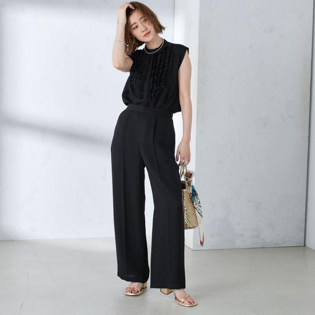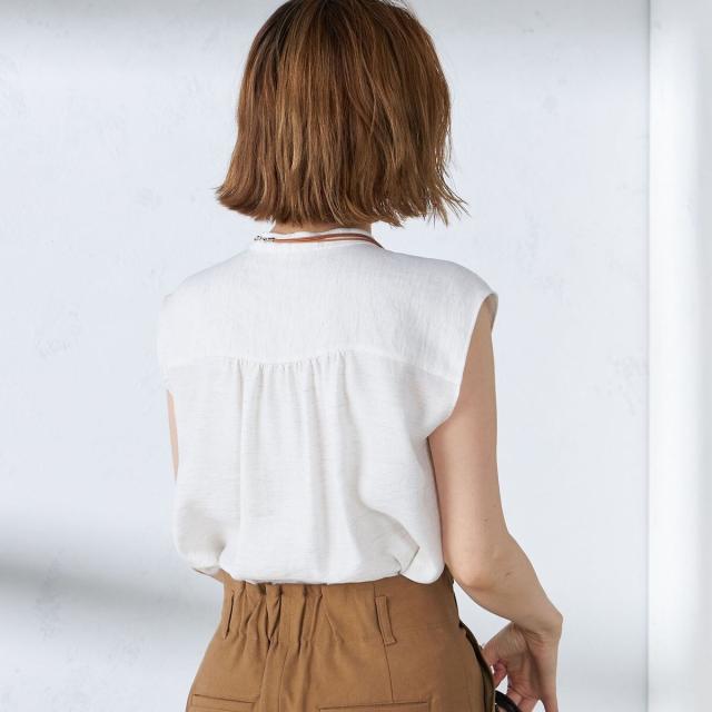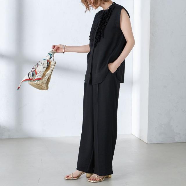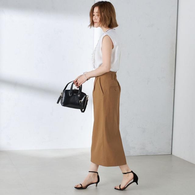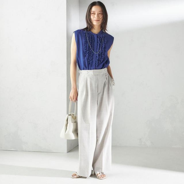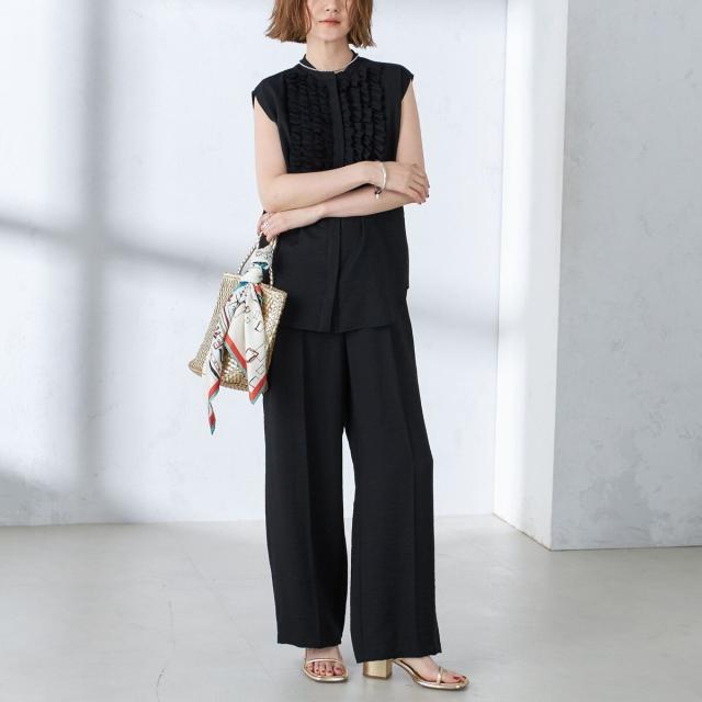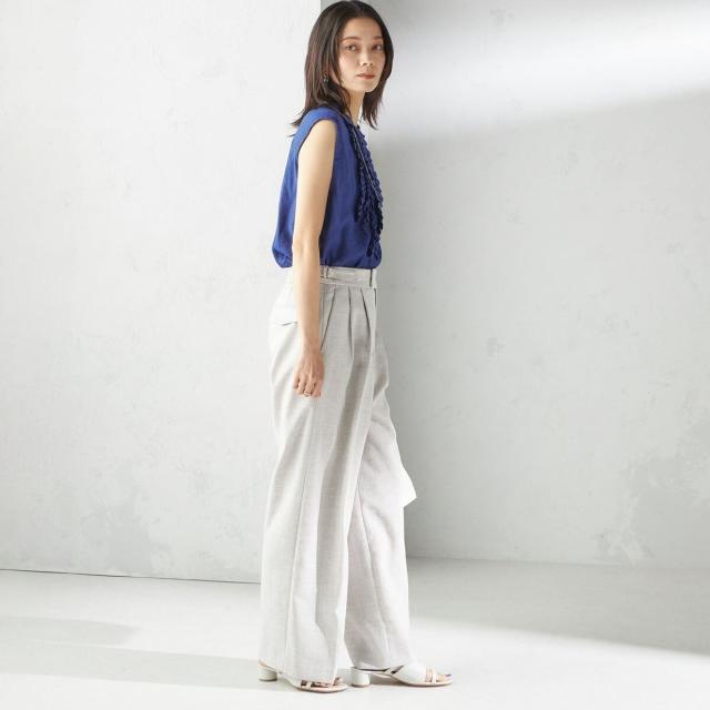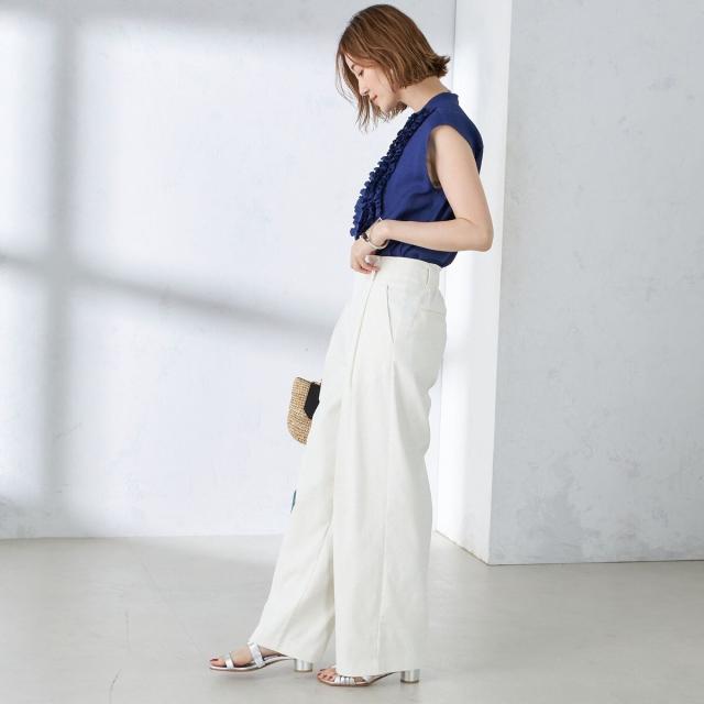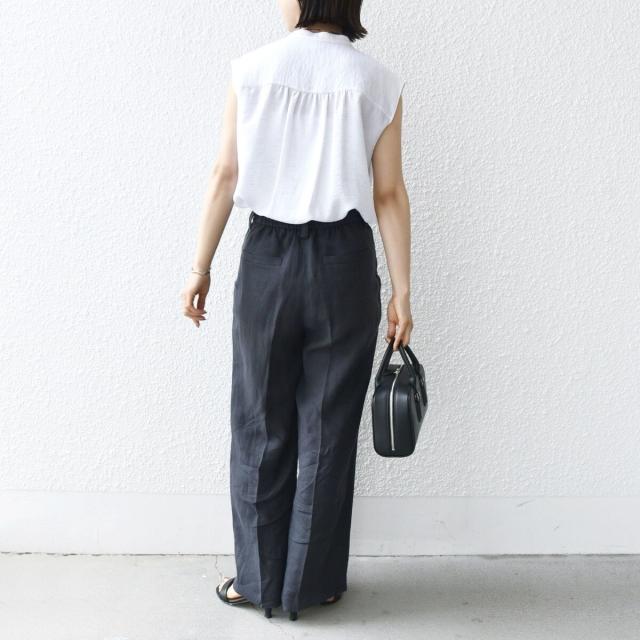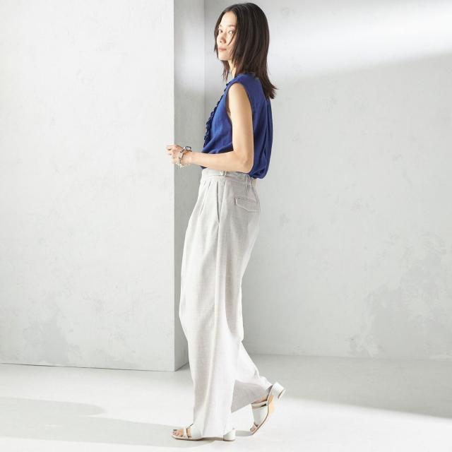 盛夏におすすめな麻混素材で、上品な光沢と落ち感が洗練された印象に。