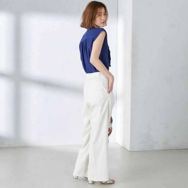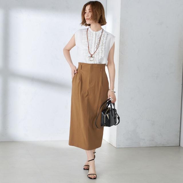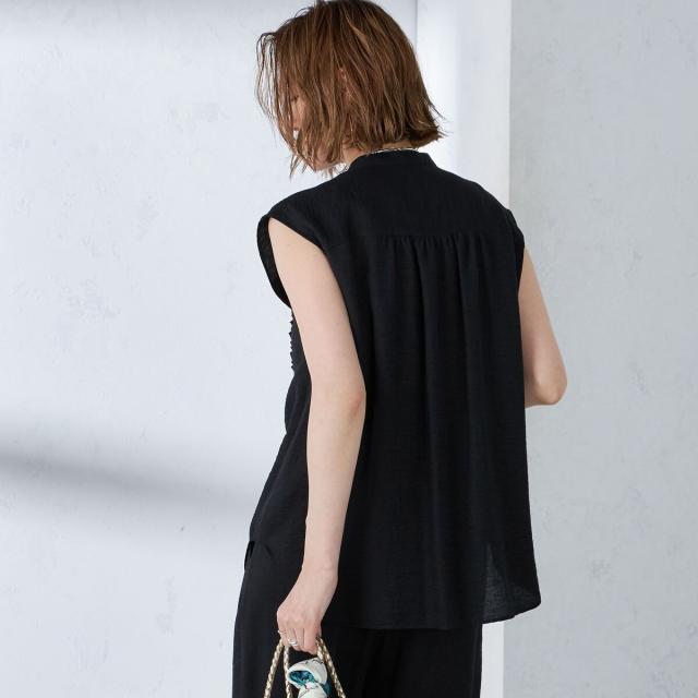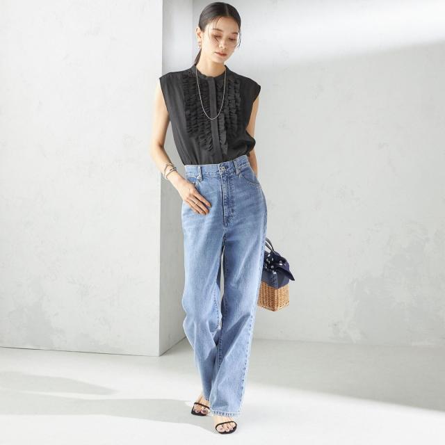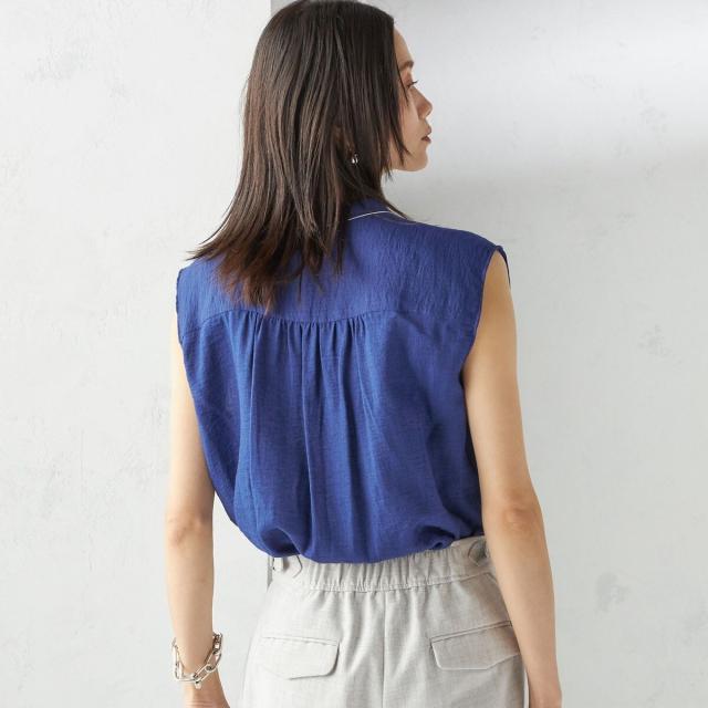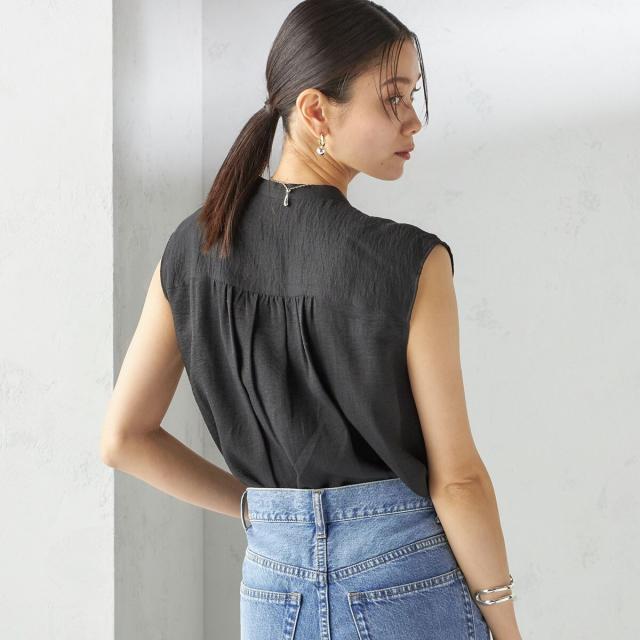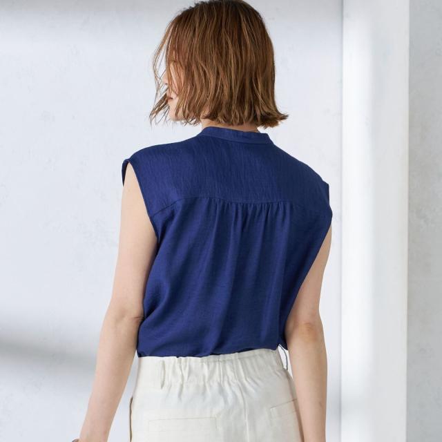 落ち感のあるボトムできれいめに、デニム合わせでカジュアルにもスタイリングしていただけるブラウスです。