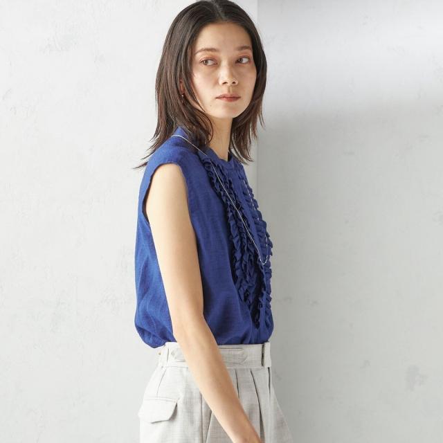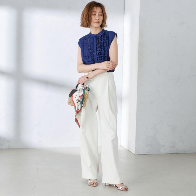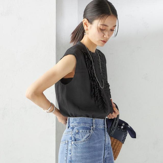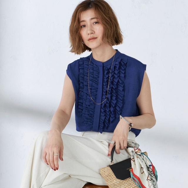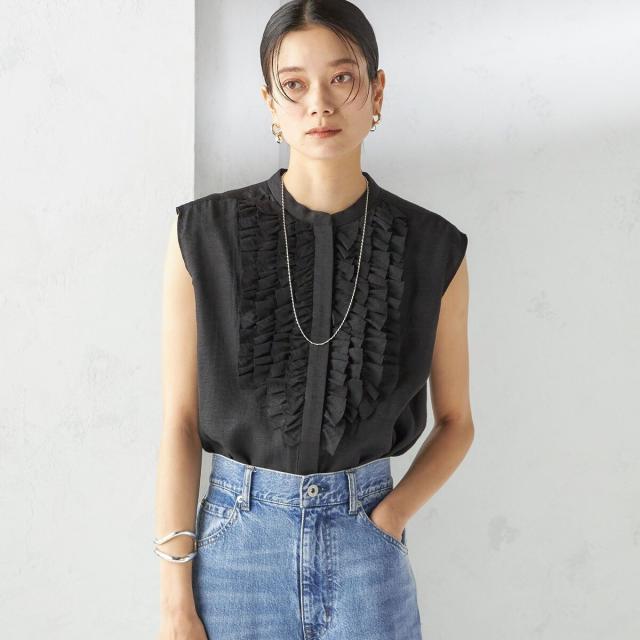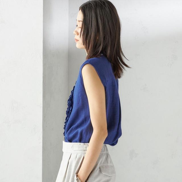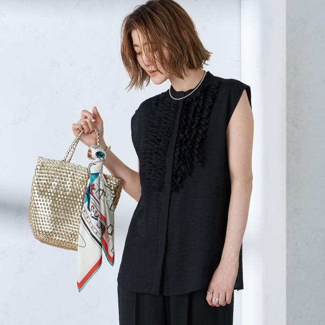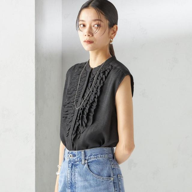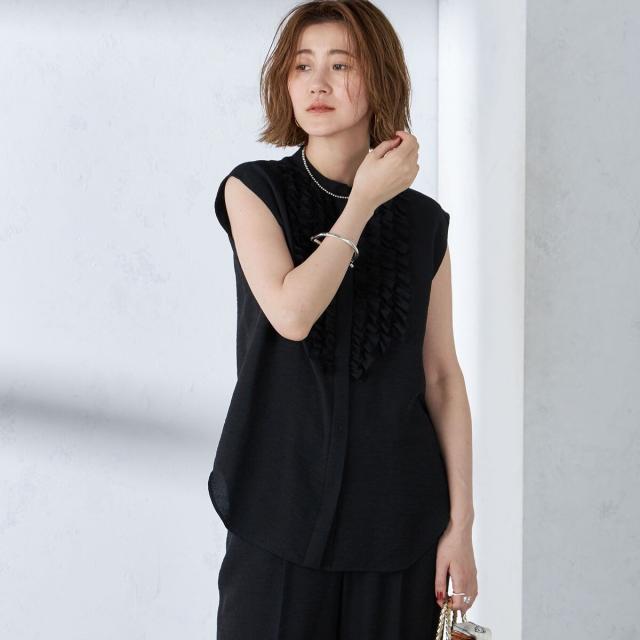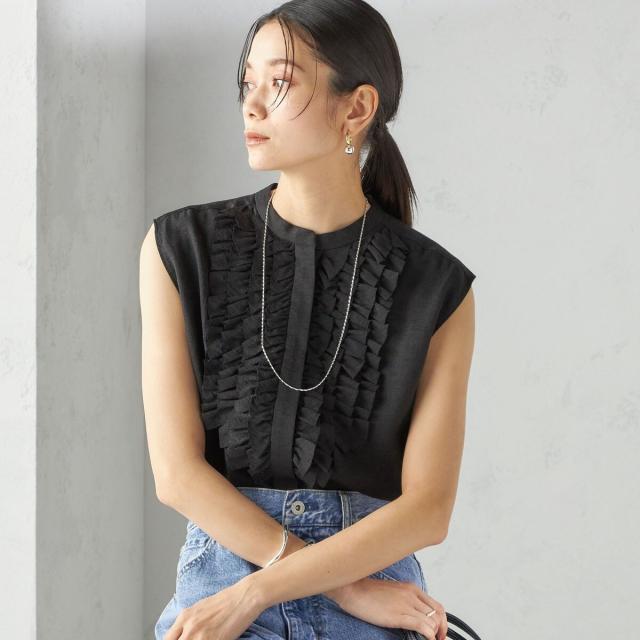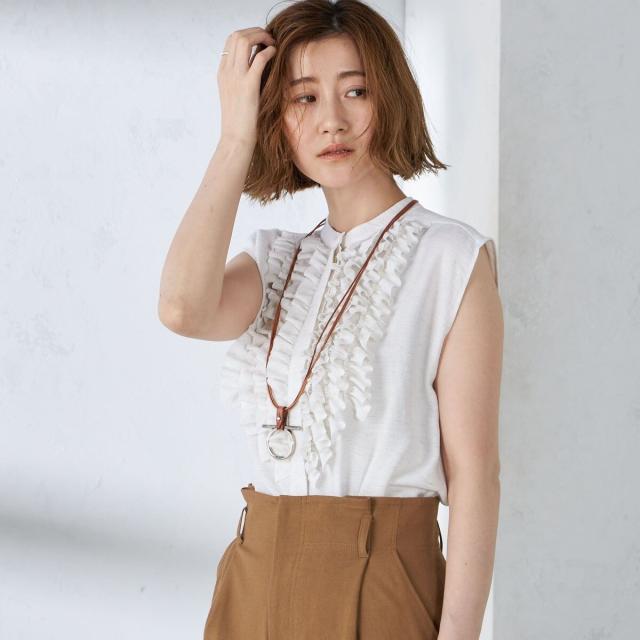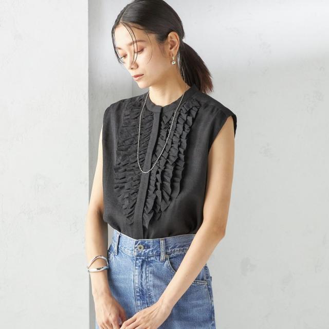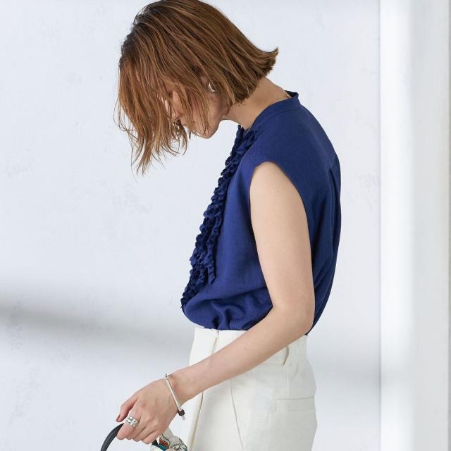 甘すぎないフロントフリルのデザインがポイントのブラウス