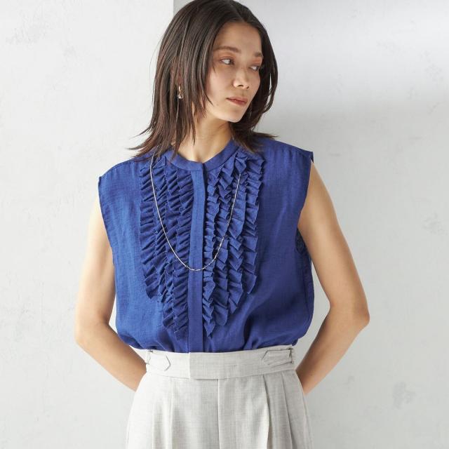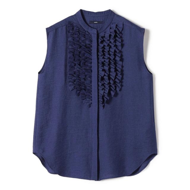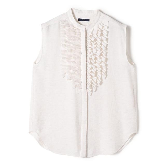 シップス(SHIPS)/〈手洗い可能〉麻混 フロント フリル フレンチスリーブ ブラウス