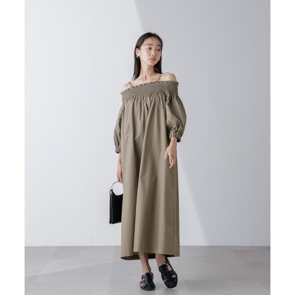 2wayシャーリングオフショルダーワンピース