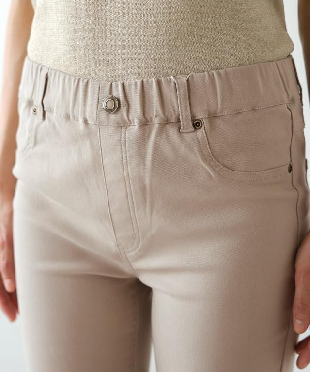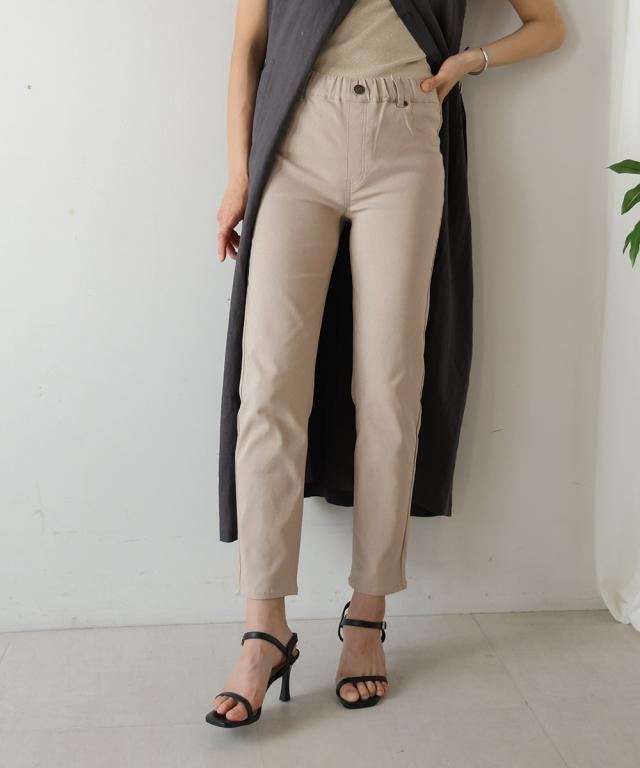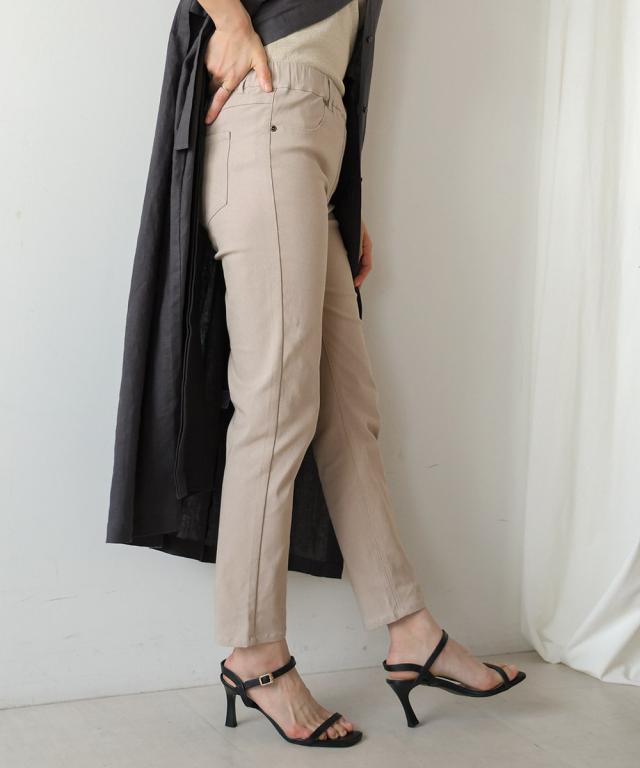 定番ボトムス!極上ストレッチが魅力のレギンスパンツ。ウエスト部分は総ゴム仕様でオンオフともにリラックスしてお召しいただけます◎腰浮きしにくく、ベルト着用も可能なためウエスト部分がずれることなく快適な穿き心地に。