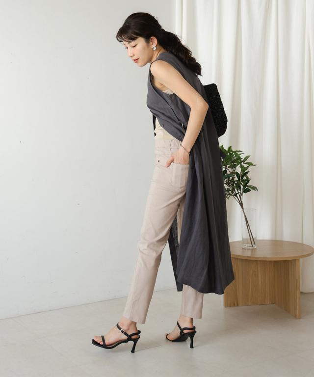 表面はサラサラな手触りでマットな光沢感を感じる生地。伸縮性に優れ、動きやすくストレスフリーな穿き心地です◎